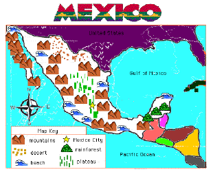 Second graders learned about the physical features of Mexico. Using a map key and template, they added the features to the map.