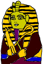 Third graders, studying about Ancient Eqypt, used the fill tool, and other paint tools and patterns in Kid Pix to add the details to a scanned drawing of King Tut.