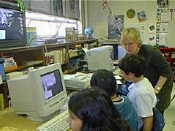 In conjunction with their Sound and Light unit, students used NIH Image software to examine digital color images to see how they are created. They learned that each pixel is a mixture of red, green and blue light. Students also discovered the difference between mixing paint colors and colors of light. They also discovered by mixing all three colors of light we get white.