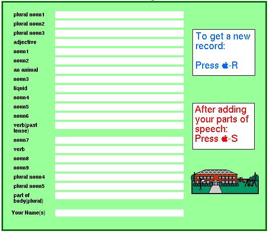 - Students open a Mad Libs database file made by